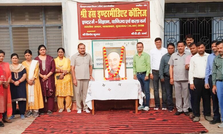 मुरादनगर। श्री हंस इंटर कॉलेज मुरादनगर में लौह पुरुष सरदार वल्लभ भाई पटेल की जयंती बड़ी धूमधाम से मनाई गई ।सर्वप्रथम विद्यालय के प्रधानाचार्य श्री विनोद कुमार ने लौह पुरुष सरदार वल्लभ भाई पटेल के चित्र पर पुष्पांजलि अर्पित की। तथा उनके जन्मदिन पर विद्यालय में रंगारंग सांस्कृतिक प्रोग्राम प्रस्तुत किए गए। कार्यक्रम का मंच संचालन कला अध्यापक व एनसीसी ऑफिसर डॉक्टर अमित कुमार ने किया। इस अवसर पर रन फॉर यूनिटी कार्यक्रम के तहत छात्र छात्राओं की दौड़ लगाई गई। तथा सभी छात्र छात्राओं को राष्ट्रीय एकता की शपथ दिलाई गई। इस अवसर पर विद्यालय के प्रधानाचार्य श्री विनोद कुमार ने सरदार वल्लभ भाई पटेल के जीवन परिचय, व्यक्तित्व, कृतित्व पर प्रकाश डालते हुए राष्ट्रीय एकता दिवस के महत्व से अवगत कराया ।व बताया कि 31 अक्टूबर भारत में प्रतिवर्ष राष्ट्रीय एकता दिवस सरदार वल्लभ भाई पटेल की जयंती को चिन्हित करने के लिए मनाया जाता है। जिसकी भारत के राजनीतिक एकीकरण में प्रमुख भूमिका थी। इस दिन का आरंभ भारत सरकार द्वारा सन 2014 में किया गया था। इस दिन विद्यालय में रन फॉर यूनिटी, शपथ ग्रहण समारोह आदि प्रोग्राम प्रस्तुत किए गए। इस दिन का उद्देश्य लोगों को देश की एकता, अखंडता और सुरक्षा के महत्व को याद दिलाना है इस साल यह दिवस एक भारत आत्मनिर्भर भारत,थीम पर मनाया जा रहा है। जो देश के सशक्त और आत्म निर्भर बनने के संकल्प को दर्शाता है। इस अवसर पर विद्यालय के समस्त अध्यापक गण व कर्मचारी गण उपस्थित थे।