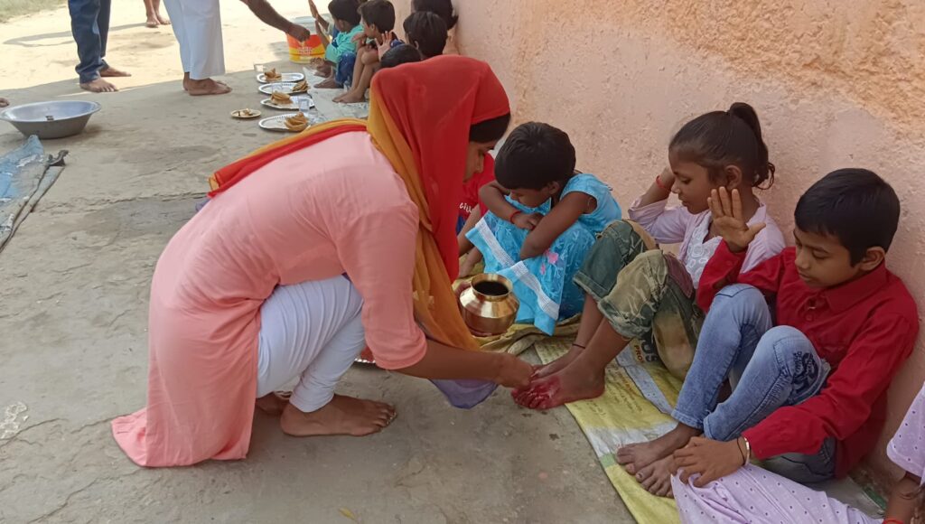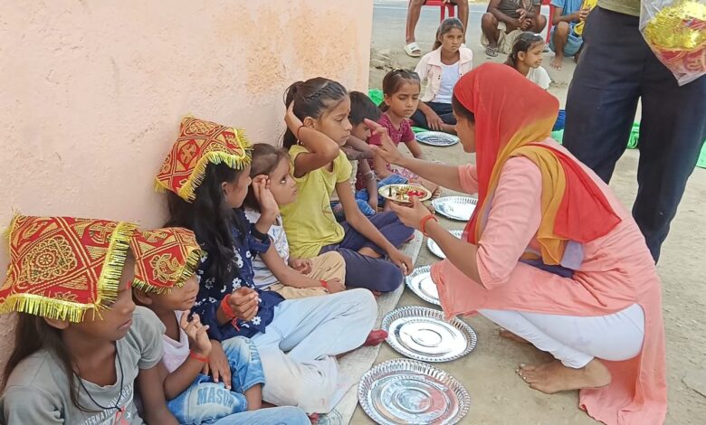 - पूजा की तैयारी: कन्याओं को बैठने के लिए आसन और पूजा की सामग्री तैयार की जाती है।