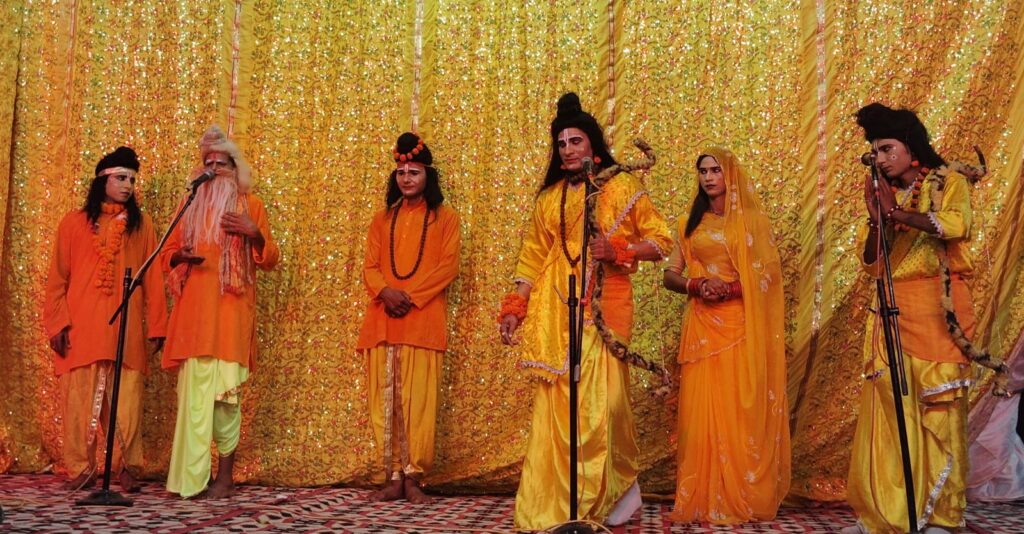 मुरादनगर। श्री आदर्श रामलीला कमेटी के तत्वाधान में आयोजित रामलीला महोत्सव में कलाकारों द्वारा प्रभु श्री राम भरत मिलाप, श्री राम के राजतिलक तथा भजन संध्या का भव्य आयोजन किया गया।