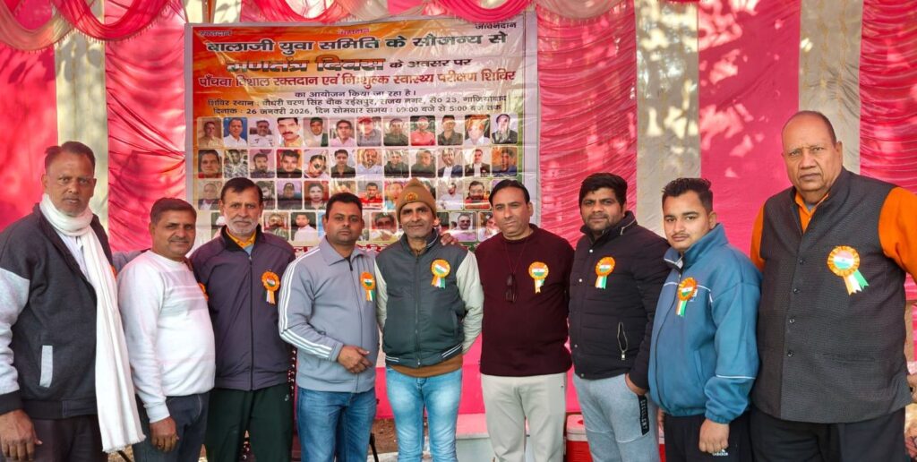 77वें गणतंत्र दिवस पर बालाजी युवा समिति व लाइफ लाइन ब्लड बैंक द्वारा पाँचवाँ विशाल रक्तदान शिविर आयोजित