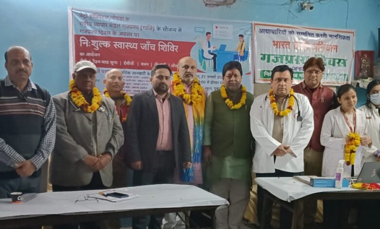 गाजियाबाद/घूकना,(आनन्द धारा न्यूज़)। राष्ट्रीय व्यापार मंडल द्वारा गजप्रस्थ दिवस के अवसर पर गजप्रस्थ के घूकना स्थित राज पब्लिक स्कूल में दिनांक 21 जनवरी 2026 को प्रातः 10 बजे से सायं 3 बजे तक एक निःशुल्क स्वास्थ्य जांच शिविर का आयोजन किया गया। यह शिविर मेट्रो हॉस्पिटल एवं हृदय संस्थान, नोएडा तथा सेंटर फॉर साइट के सहयोग से आयोजित किया गया, जिसमें विशेषज्ञ चिकित्सकों ने सेवा भाव के साथ अपनी सेवाएं प्रदान कीं।