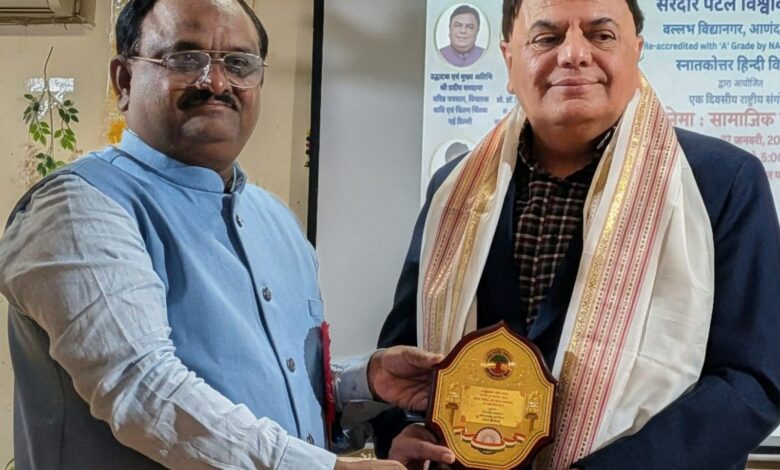 नई दिल्ली (सुशील कुमार शर्मा)। साहित्य समाज का मन है तो सिनेमा समाज का चेहरा। साहित्य शब्दों की विधा है तो सिनेमा दृश्य और ध्वनि की। हमारी बहुत सी साहित्यिक कृतियों पर बेहद खूबसूरत, सफल और कालजयी फिल्में बनी हैं। लेकिन यह अत्यंत दुखद है कि अब हमारे अधिकांश फिल्मकार भारतीय साहित्य पर फिल्म न बनाकर विदेशी साहित्य पर फिल्म बना रहे हैं। यही कारण है कि हमारी फिल्मों से भारतीयता दूर होती जा रही है। यदि ऐसे ही चलता रहा तो हमारा साहित्य भी विश्वपटल पर आने की जगह पुस्तकों में सिमट कर रह जाएगा। उपरोक्त विचार वरिष्ठ पत्रकार, लेखक, कवि, विचारक और विख्यात फिल्म समीक्षक प्रदीप सरदाना ने ‘साहित्य और सिनेमा, सामाजिक एवं सांस्कृतिक सन्दर्भ’ में आयोजित एक राष्ट्रीय संगोष्ठी में मुख्य अतिथि के रूप में व्यक्त किये। गुजरात और देश के प्रतिष्ठित ‘सरदार पटेल विश्वविद्यालय,वल्लभ विद्यानगर,आणंद द्वारा आयोजित इस एक दिवसीय संगोष्ठी में देश भर के विभिन्न विश्वविद्यालयों के आचार्य, कई साहित्यकार और फिल्म विद्वानों ने हिस्सा लिया। विश्वविद्यालय के आचार्य एवं हिंदी विभाग के अध्यक्ष डॉ. दिलीप मेहरा इस अविस्मरणीय आयोजन के संयोजक थे।