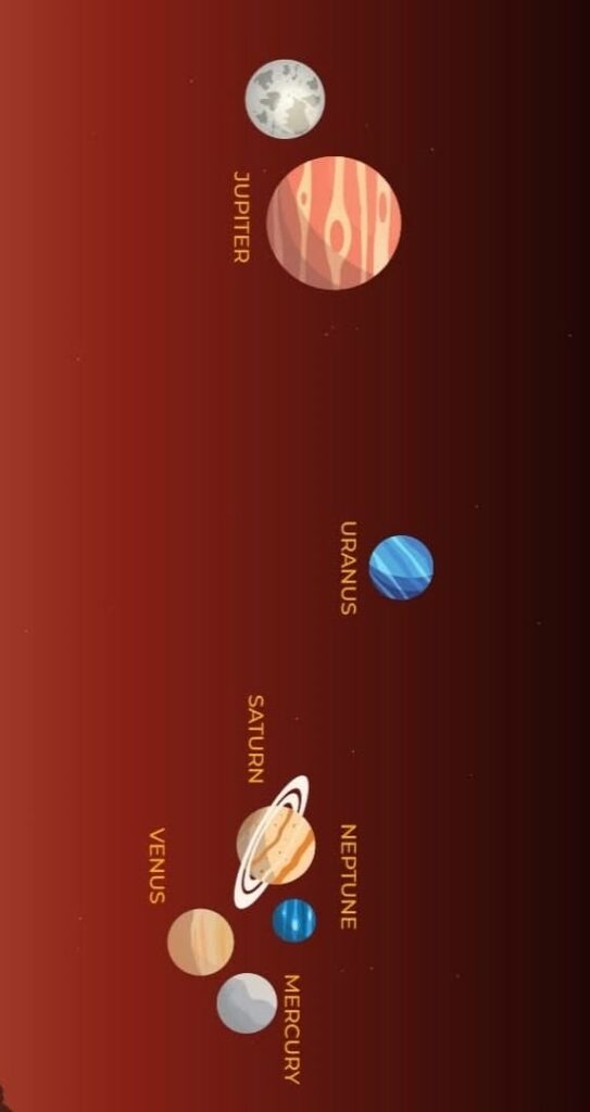 शाम के समय चित्र के अनुसार सभी ग्रह दिखाई देंगे और प्रातः काल सूर्योदय से पूर्व इसके उल्टे क्रम में ग्रह दिखाई देंगे।