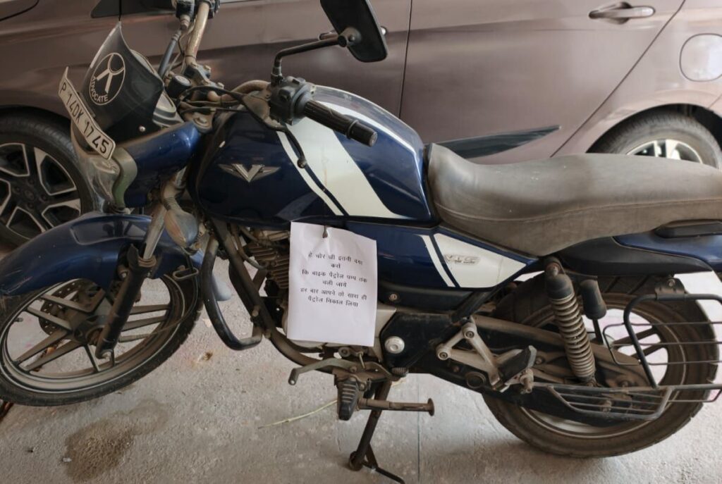 उन्होंने बताया कि बार-बार शिकायत करने के बावजूद आरडब्ल्यूए (RWA) पदाधिकारियों द्वारा इस समस्या पर कोई ठोस कदम नहीं उठाया गया। इसी कारण उन्होंने अपनी मोटरसाइकिल पर एक पर्ची लगाकर चोर से ही विनम्र अपील कर दी है। उस पर्ची पर लिखा है— “हे चोर जी इतनी दया करो कि बाइक पेट्रोल पम्प तक चली जाये, हर बार आपने तो सारा ही पेट्रोल निकाल लिया।”
